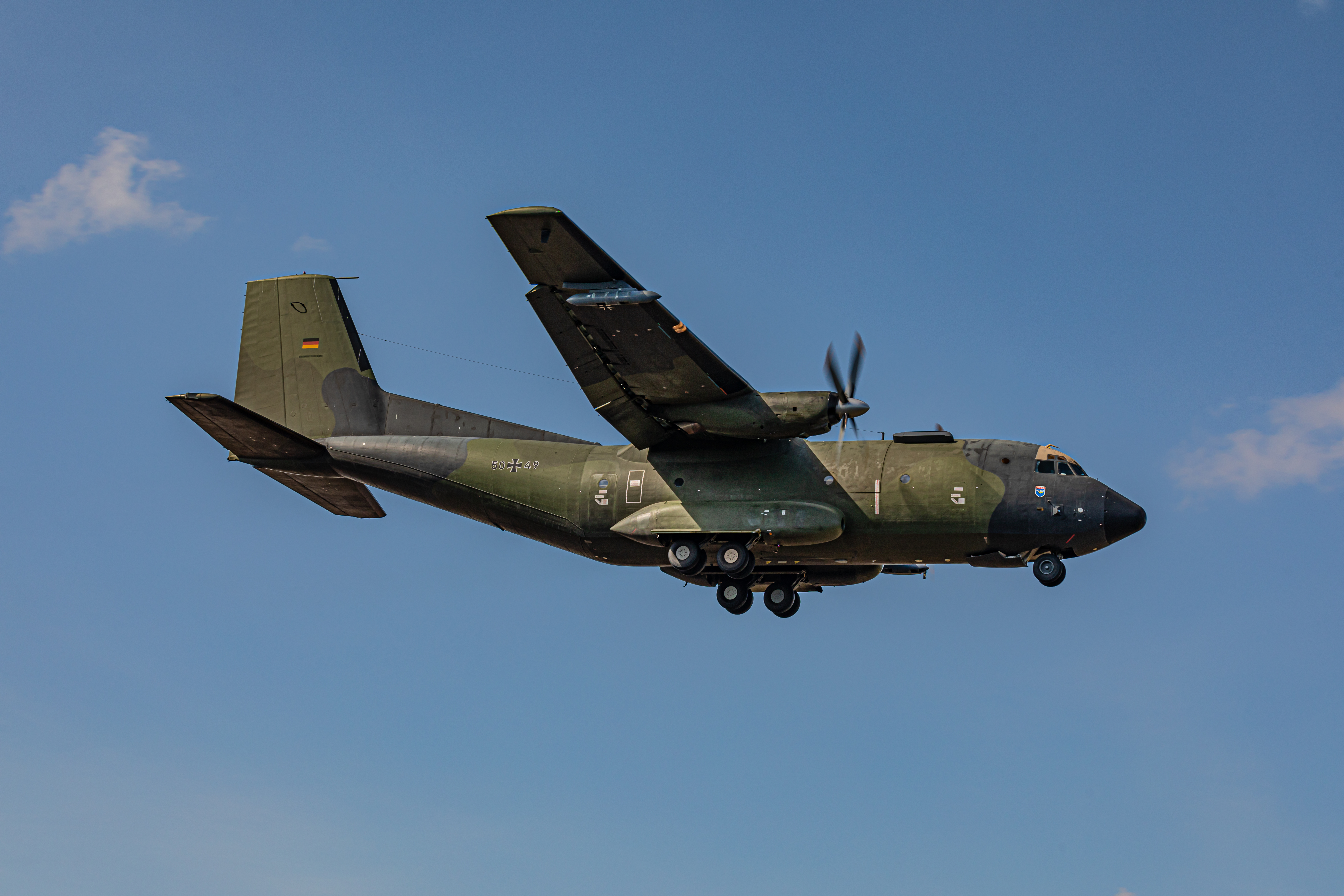 Transall C-160 | ![]() Der taktische Transporter wird noch bis Ende 2021 vom Lufttransportgeschwader 63 in Hohn (Schleswig-Holstein) eingesetzt. Dann endet mit der Auflösung des LTG 63 auch die Ära Transall in der Luftwaffe. Durch die fortgeschrittene Außerdienststellung ist Hohn auch der einzige Platz, wo die C-160 noch im Regelflugbetrieb sichtbar ist. Aber natürlich führt auch dieses Flugzeug noch Aufgaben durch, die sie halbwegs regelmäßig zu folgenden Flugplätzen führen: Länge: 32,40 m