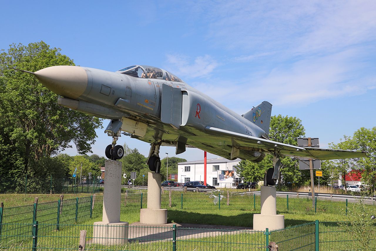 Eigentlich keine richtige Spotterposition am Fliegerhorst aber dennoch einen Besuch wert – die ausgestellte Phantom (38+14) an der Kreuzung Isumer Straße / B210. Auf der gegenüberliegenden Straßenseite der Isumer Str. befindet sich eine „Netto“ Filiale, auf deren Parkplatz ihr euer Auto kurz parken könnt.