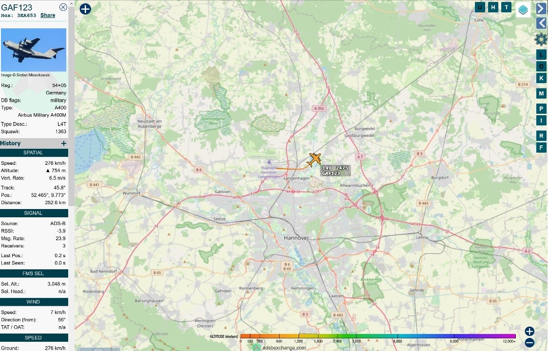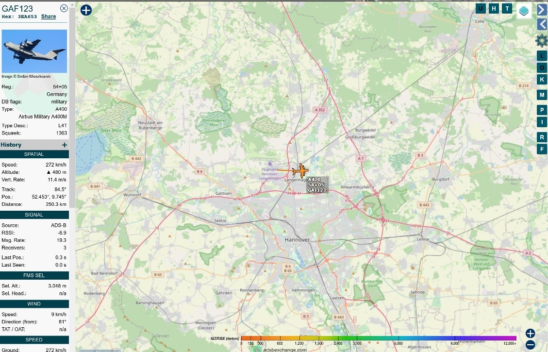 Auf diesen Plattformen lassen sich auch zahlreiche (wenn auch nicht alle) militärische Flüge in Echtzeit beobachten. Während ADSBexchange sowohl zivile als auch militärische Flugzeuge anzeigt, konzentriert sich ads-b.nl ausschließlich auf militärische Flüge.