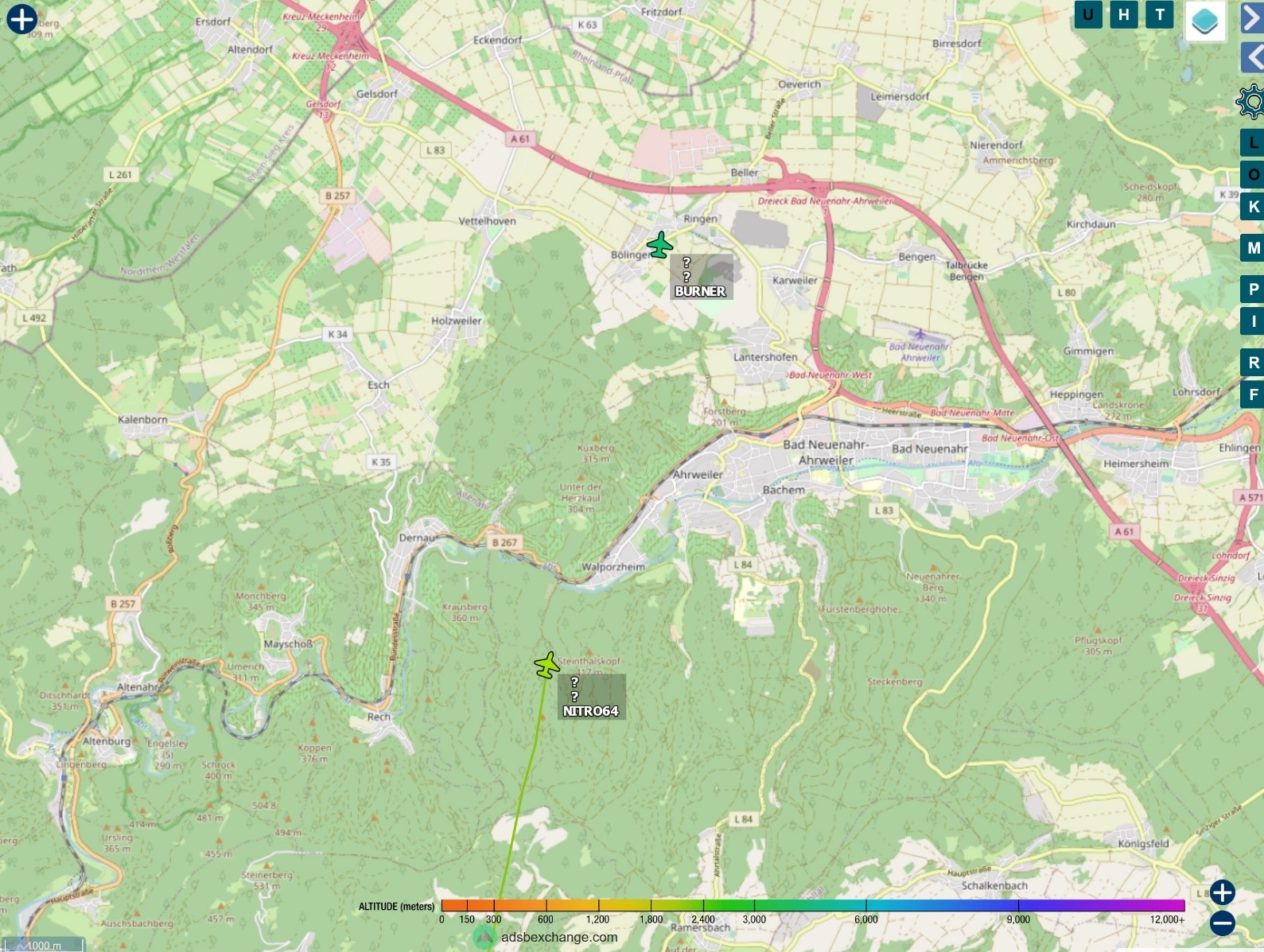 Am unteren Rand seht ihr eine Skala, die die Farben den Flughöhen zuordnet: