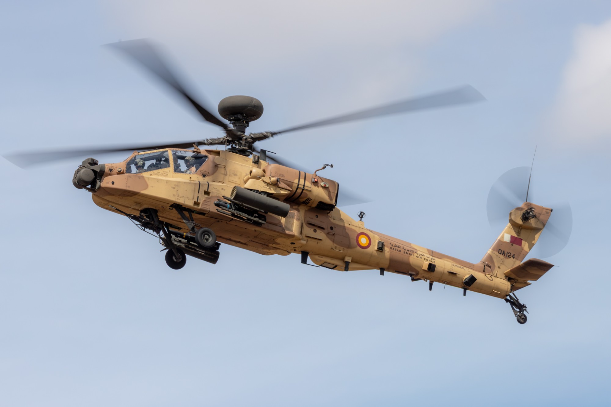 Auch die katarische Luftwaffe sorgte für eine Rarität: Ein AH-64 Apache in Wüstentarnlackierung erreichte Fairford von Brize Norton aus. Den größten Teil der langen Anreise aus Qatar absolvierte der Hubschrauber im Frachtraum einer Boeing C-17, die ebenfalls ausgestellt wurde. Ähnlich wie bereits bei der katarischen NH90 im vergangenen Jahr entschied man, den Apache auf dem nahegelegenen Stützpunkt Brize Norton auszuladen und die letzten Flugminuten aus eigener Kraft zu absolvieren – sehr zur Freude der Spotter.