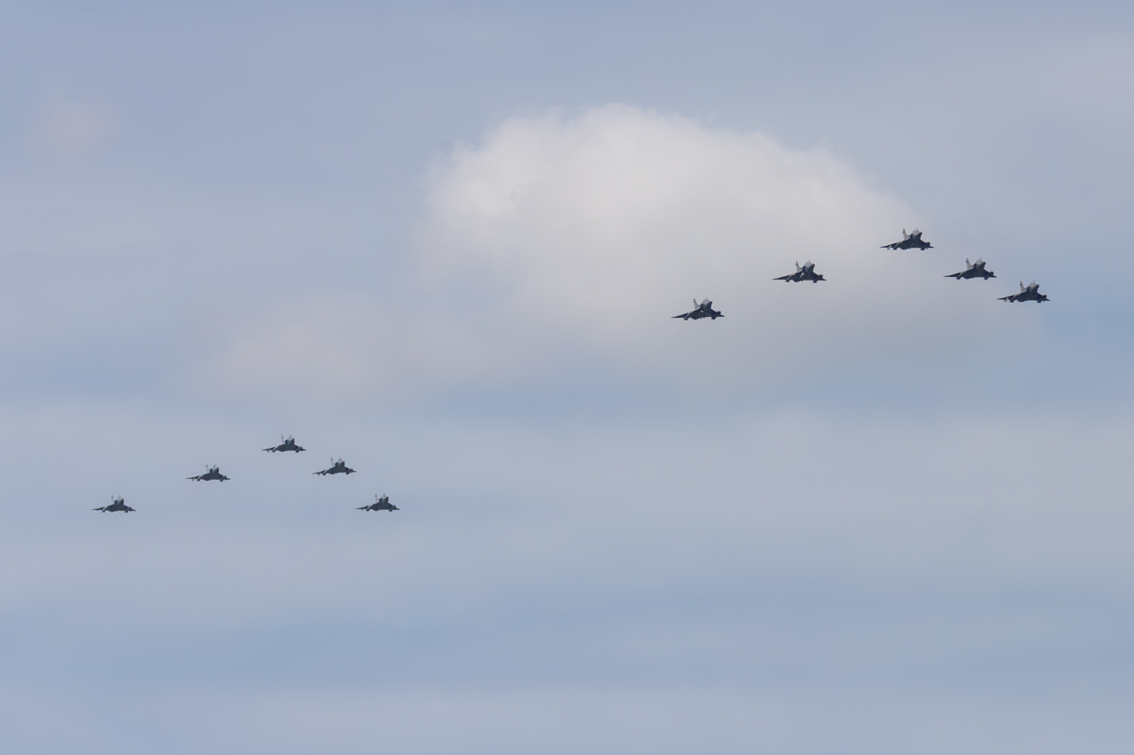 Die Spotterveranstaltung begann um 12:00 Uhr. Gegen 13:30 Uhr starteten vier Mirage 2000-5F der in Luxeuil beheimateten EC 1/2 „Cigognes“, die während des Festakts rund zwei Stunden unterwegs waren und zusammen mit fünf Mirage 2000D sowie einer Mirage 2000B aus Nancy für zwei Formationsanflüge zurückkehrten. Zusätzlich sorgten einige Dassault Rafale B mit Überflügen für Abwechslung. Anschließend zeigten die Mirage aus Nancy noch jeweils einen Touch-and-Go bzw. Low Approach, bevor die Maschinen aus Luxeuil landeten und das Flugprogramm gegen 16:20 Uhr endete. Für die Spotter ging es anschließend mit dem Bus in den Bereich, in dem kurz zuvor der Festakt beendet worden war. Dort bot sich die Gelegenheit, mehrere Mirage 2000 verschiedener Varianten im Static Display zu fotografieren. Alle ausgestellten Maschinen erhielten zu diesem Anlass ein Sonderleitwerk; tatsächlich waren jedoch nur zwei davon noch einsatzfähige Flugzeuge, während die übrigen bereits außer Dienst gestellt worden waren.