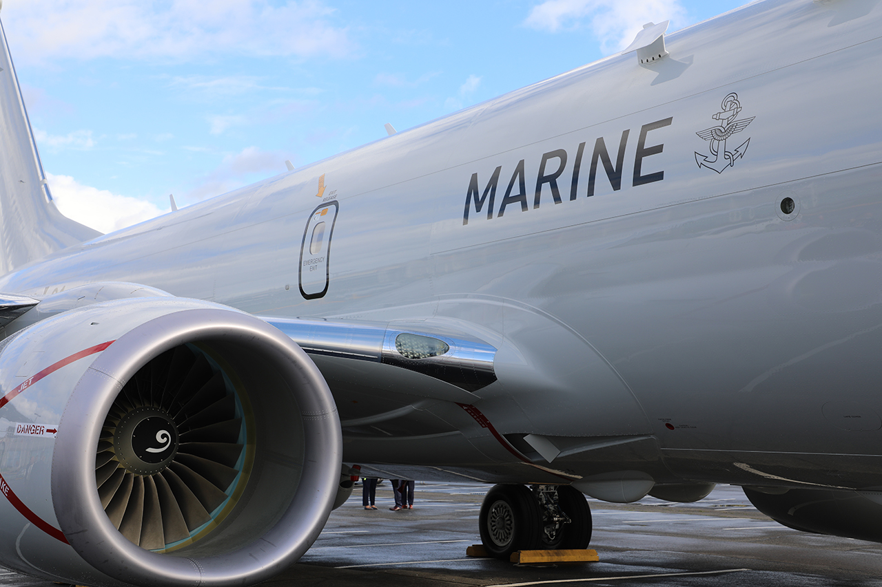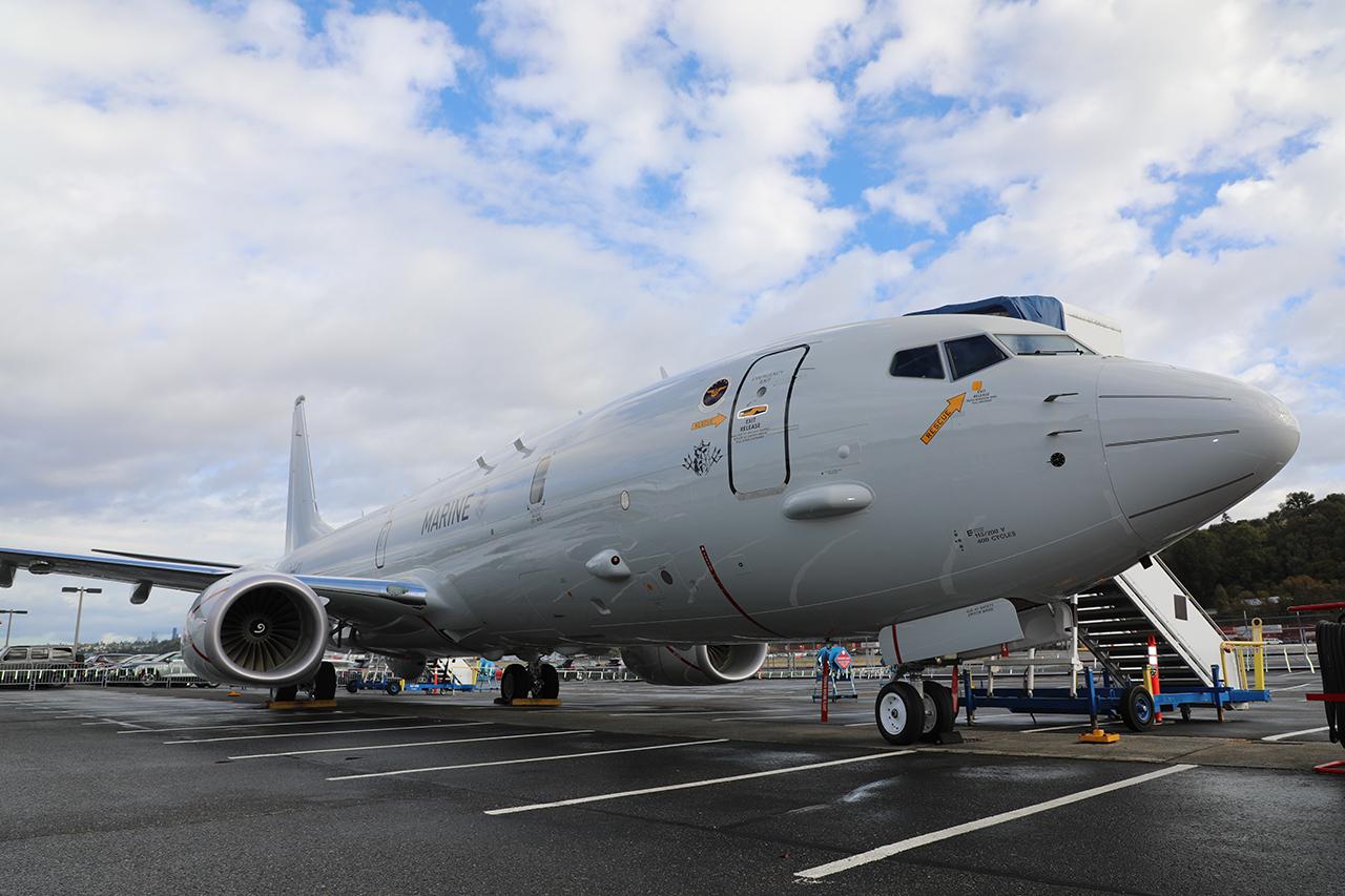 Der Seefernaufklärer P-8A Poseidon, mit den Insignien der Deutschen Marine, bei Boeing in Seattle/USA.
