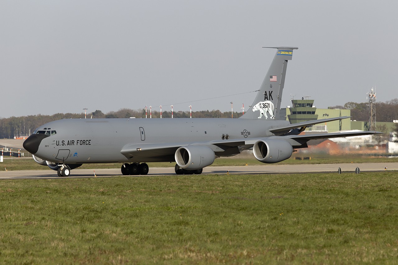 Häufige Besucher in Geilenkirchen: Die einzigen regelmäßigen Besucher in Geilenkirchen sind die KC-135 der Air National Guard Einheiten. Zwei bis drei dieser Tankflugzeuge sind im ständigen Wechsel in Geilenkirchen stationiert und nehmen regelmäßig am Flugbetrieb teil. Ansonsten gleicht Geilenkirchen (vor allem aufgrund der Kommandobehörden) einer Wundertüte, wo jederzeit alles vorbeikommen kann.