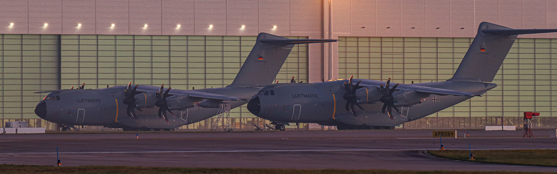 Die in Wunstorf hauptsächlich genutzte Bahn ist 08/26. Von diesem Punkt aus habt ihr einen guten Überblick über die Plattform und könnt beinahe alle Maschinen sehen, die dort abgestellt sind. Durch die kurze Startstrecke der A400M ist die Maschine am Ende der Bahn zwar schon recht hoch, doch könnt ihr mit einer ca 1m hohen Leiter den kompletten Startweg der Maschinen einsehen. Bei Richtung 08 steht ihr an diesem Punkt auch für Landungen gut, solltet aber ein Objektiv mit etwas geringerer Brennweite (unter 80mm) zur Hand haben.